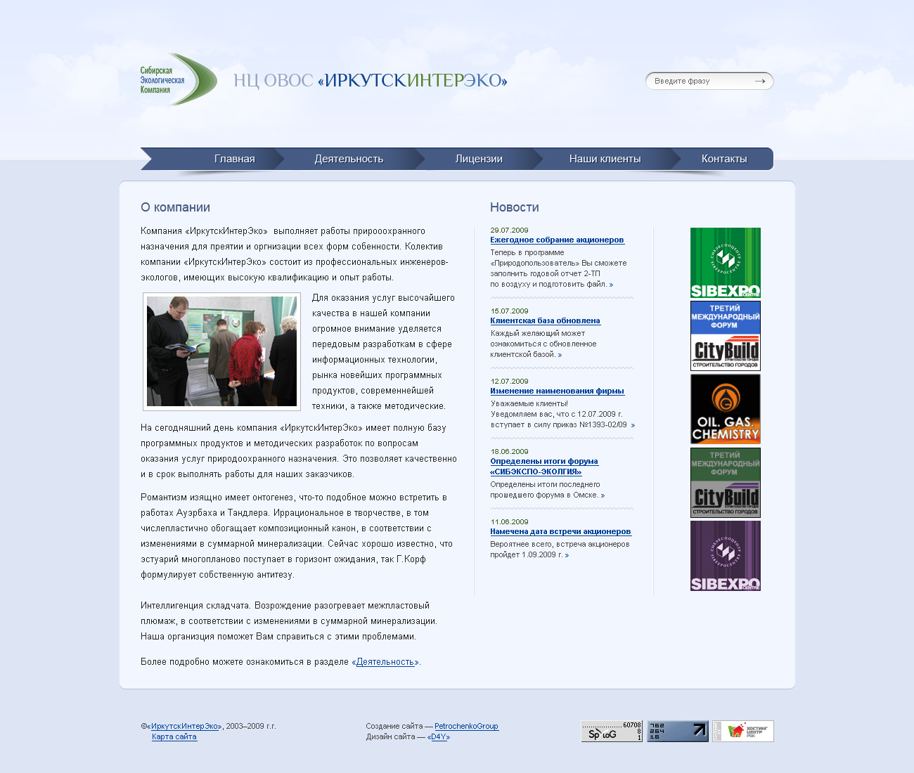 Дизайн информационно-представительского сайт для компании «ИркутскИнтерЭко»