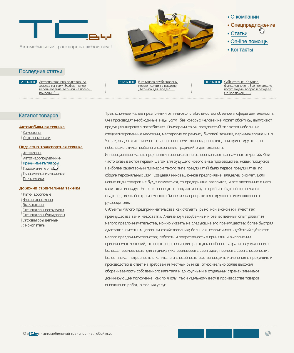 Дизайн для сайта фирмы «TC», занимающейся поставками промышленного автомобильного транспорта