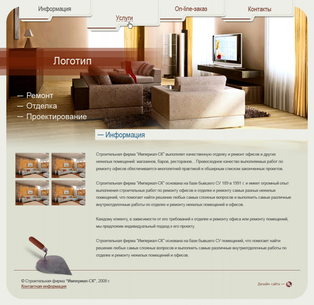 Дизайн сайта для строительно-отделочной фирмы «Империал-СК»