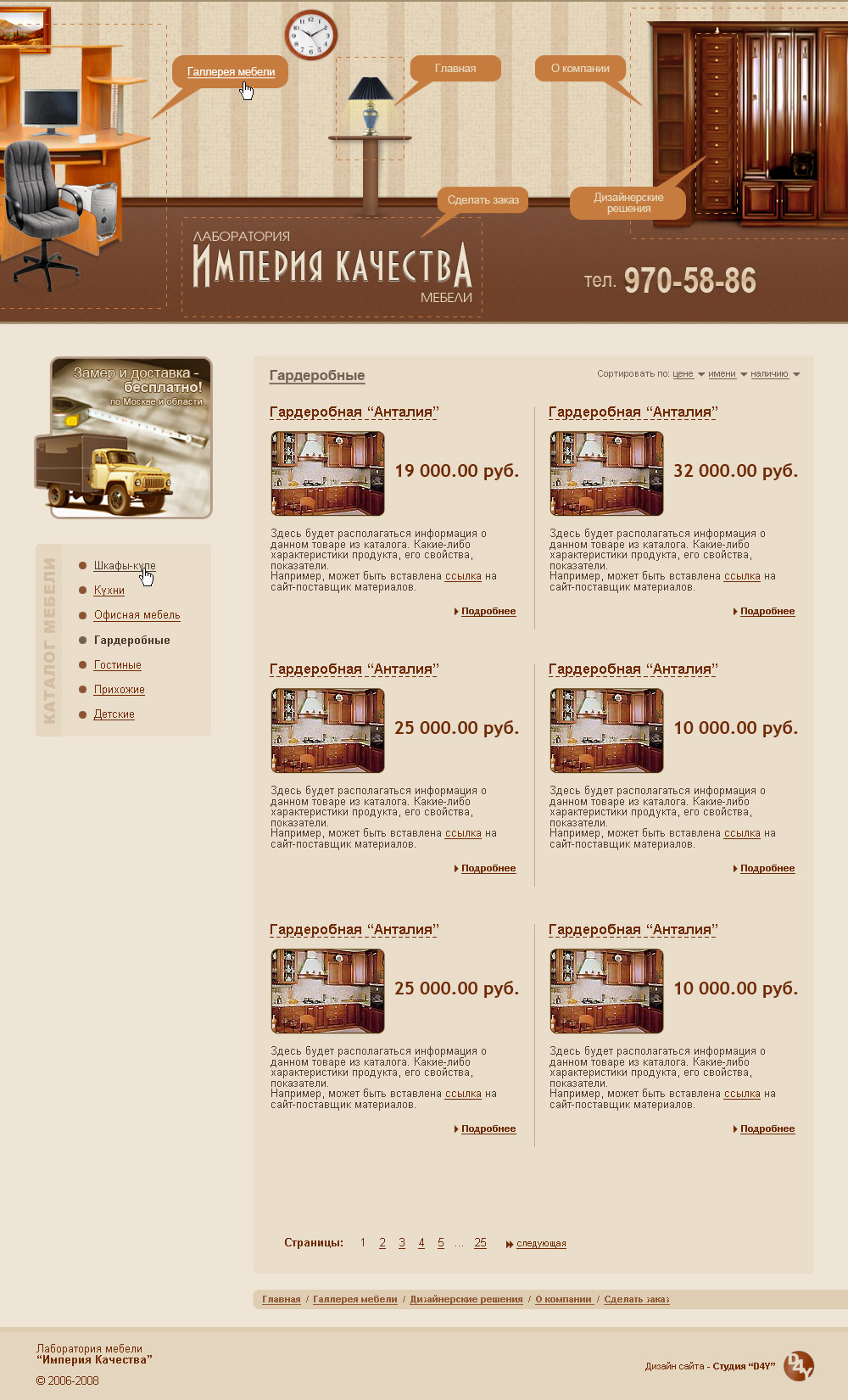 Дизайн и верстка сайта фирмы «Лаборатория мебели Империя Качества»