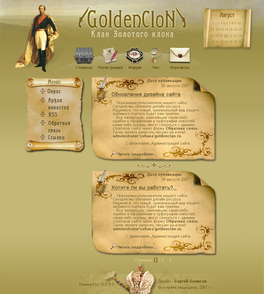 Концепт дизайна сайта одного из кланов сетевой игры «Золотой клон»