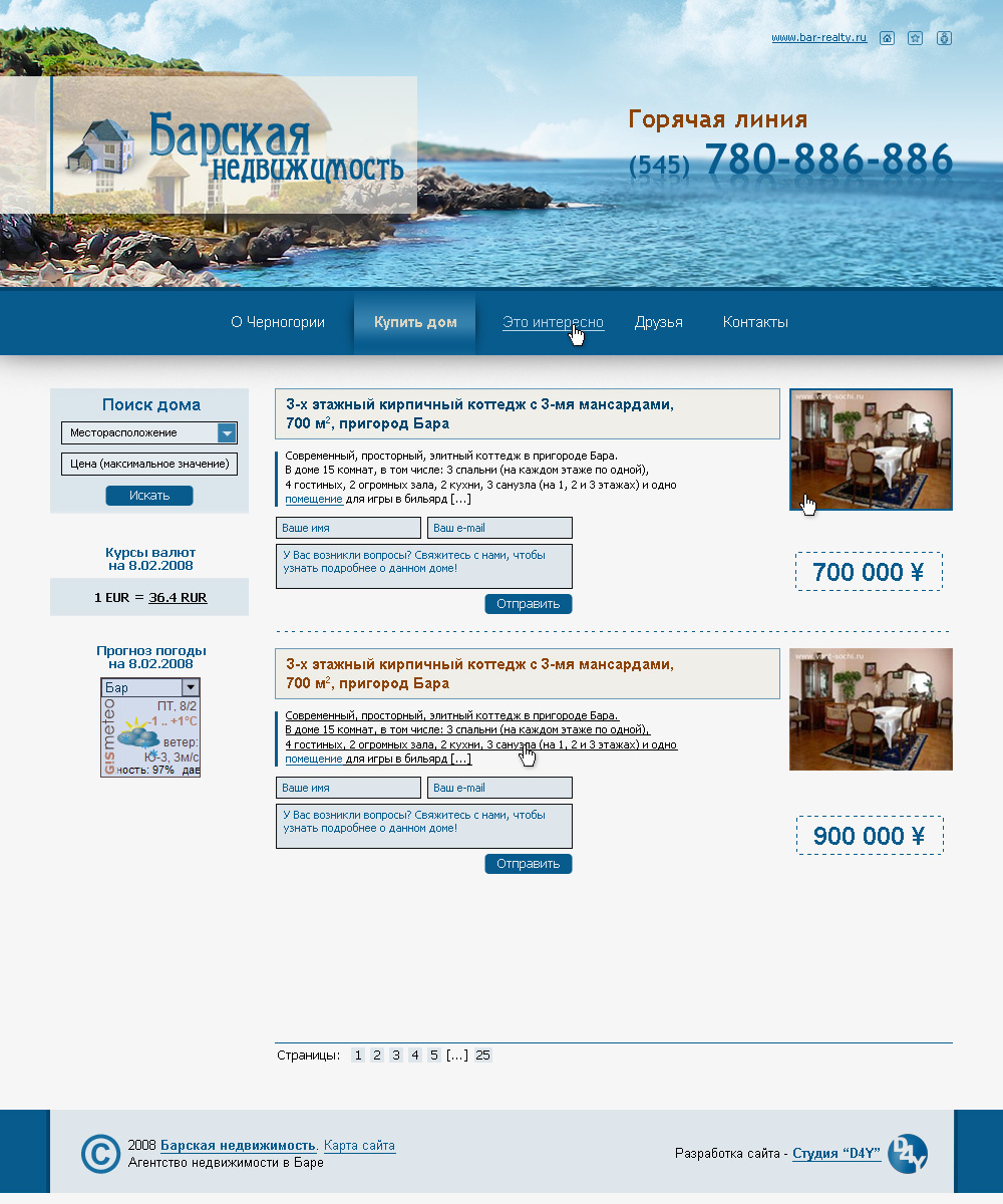 Дизайн, верстка и программинг сайта агентства недвижимости «Барская недвижимость» г. Бар, Черногория