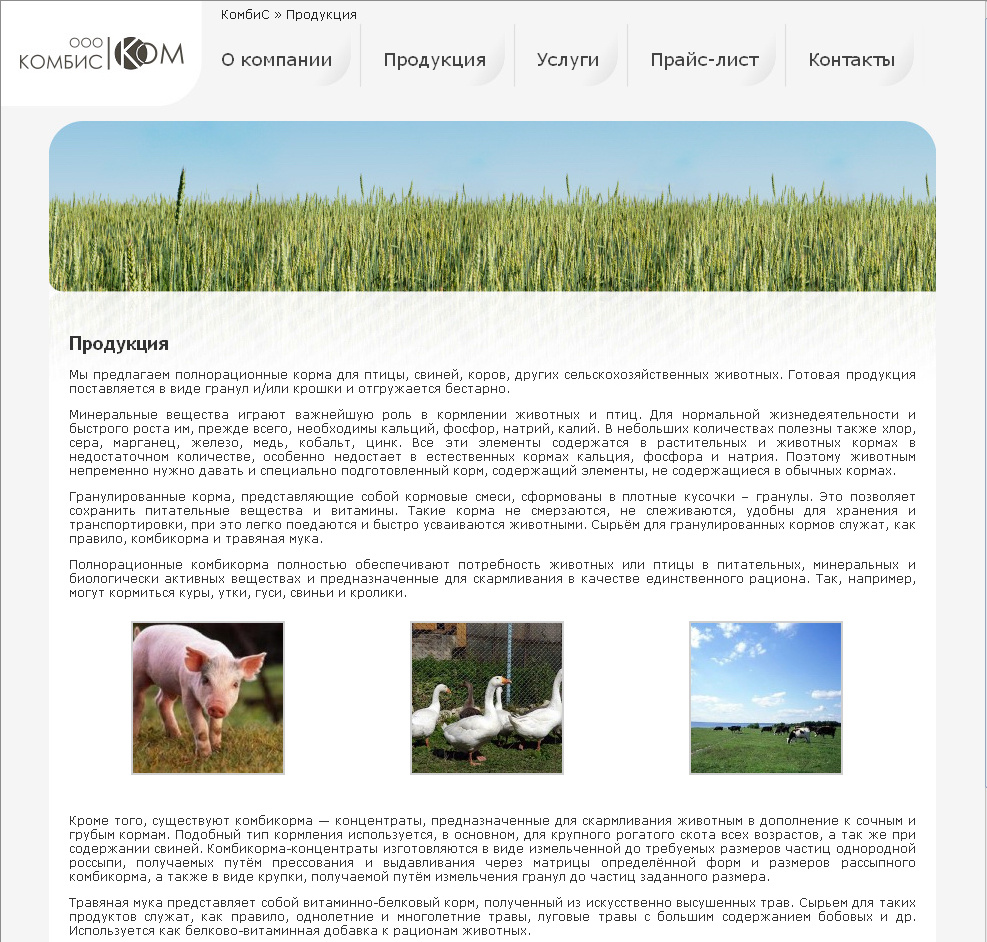Фирма КомбиС занимается продажей полнорационных кормов для птицы, свиней, коров, других сельскохозяйственных животных.