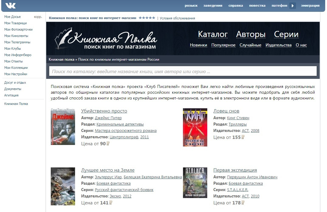 Книжный интернет-магазин Клуба Писателей ВКонтакте ← Веб-приложения