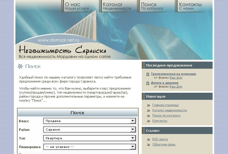 Каталог недвижимости города Саранска и республики Мордовия призван помочь пользователям интернета с поиском недвижимости по Саранску и даёт возможность агенставм недвижимости публиковать свои объявления в сети Интернет.